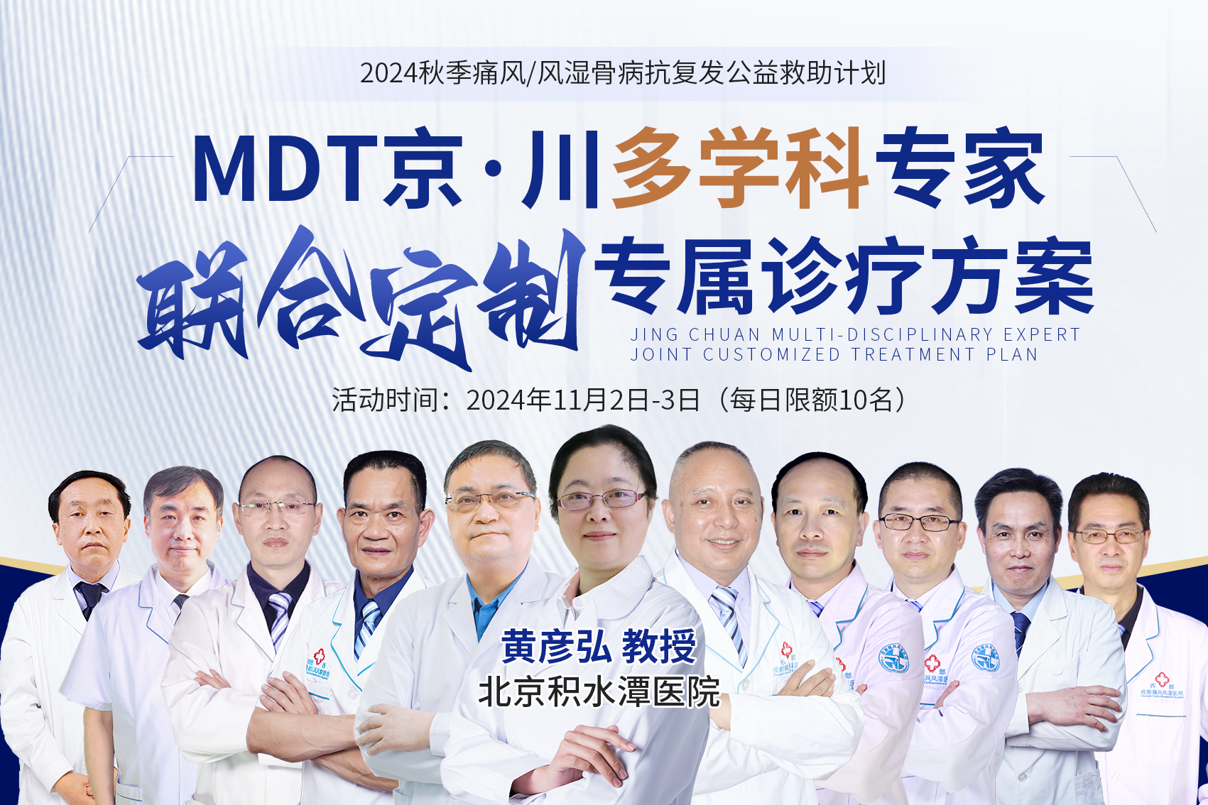 “北京+四川”多学科及名医工作室成员,多位名医教授针对患者的病情展开深入讨论、强强联合会诊,做出精确诊断,最终给出综合性、个体化的治疗方案,帮助广大痛风、风湿骨病患者获得规范治疗,及早的控制疾病发展、摆脱病痛折磨。